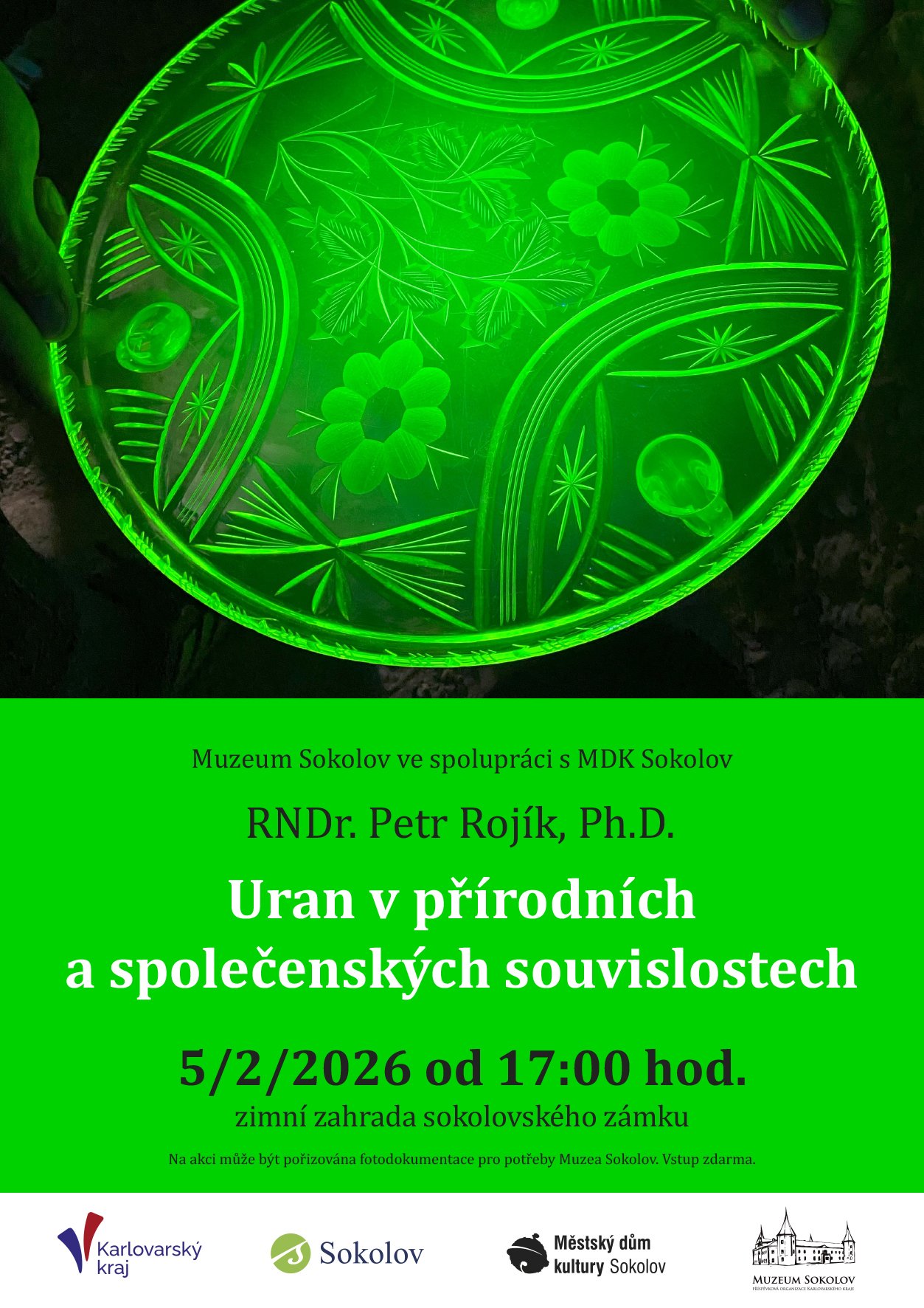 Přednáška Petra Rojíka Muzeum Sokolov (zimní zahrada sokolovského zámku) Dne 5. února 2026 od 17. hod RNDr. Petr Rojík -Uran v …