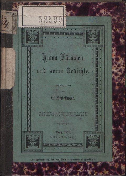 Schlesinger, Ludwig: Anton Fürnstein und seine Gedichte. 97 s. Prag 1880