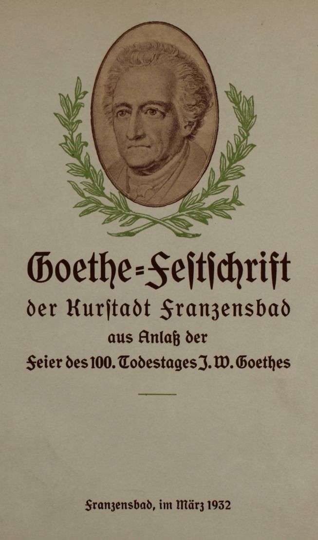 Pamětní spis vydaný radou města Karlovy Vary u příležitosti 100. výročí Goethova úmrtí. Německy