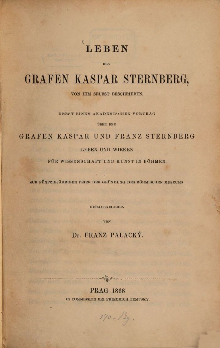 Palacký, František: Leben des Grafen Kaspar von Sternberg. 254 s. Prag 1868. Německy