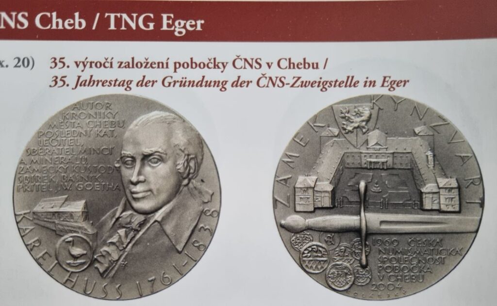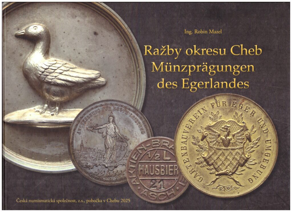 Výpravná česko-německá publikace chebského numismatika ing. Robina Mazla si klade za cíl zdokumentovat veškeré známé i neznámé medaile, žetony a plakety v okrese Cheb. Šlo o náročný úkol , protože ne vždy existují záznamy o jednotlivých ražbách